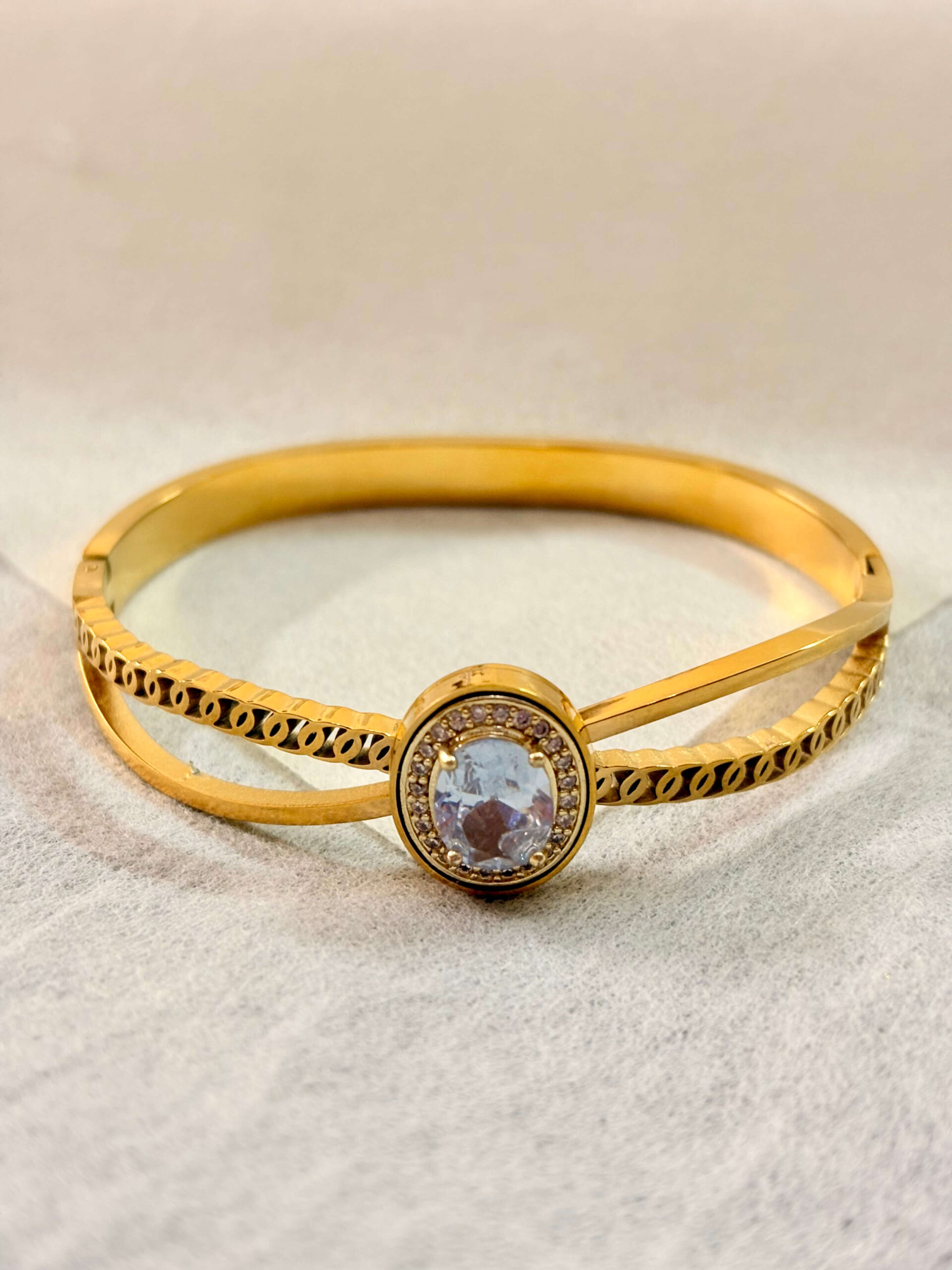 Bold curves meet radiant sparkle in the Amara Crystal Cuff. With a unique wave-inspired silhouette and shimmering stones lining its edges, this open bangle redefines elegance with a twist. Perfect for stacking or wearing solo as a statement, it’s your go-to glam essential.