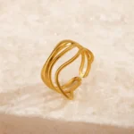 Stylish and durable—our Multi-Layer Water Ripple Open Ring features an adjustable fit, anti-tarnish titanium stainless steel, and Gold PVD plating for a long-lasting shine. Waterproof and perfect for everyday wear!
